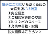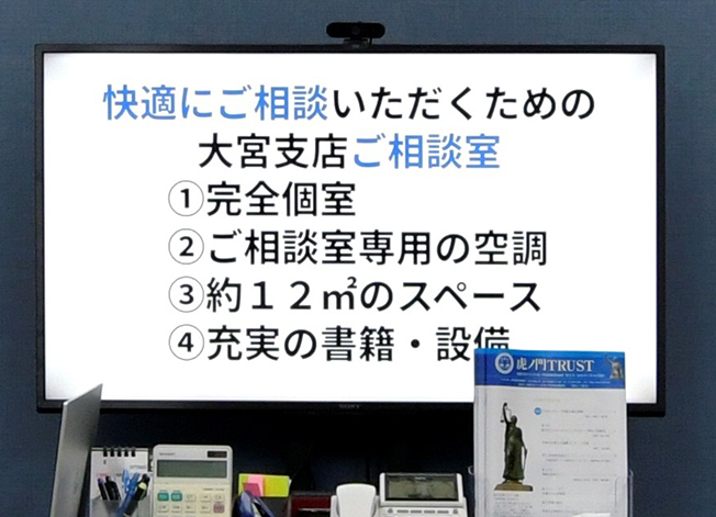 ご来所いただきやすい環境づくりの徹底により、大宮支店では、皆様がご納得いくまで何度でも弁護士にご事情やお気持ちを伝えることができます。
